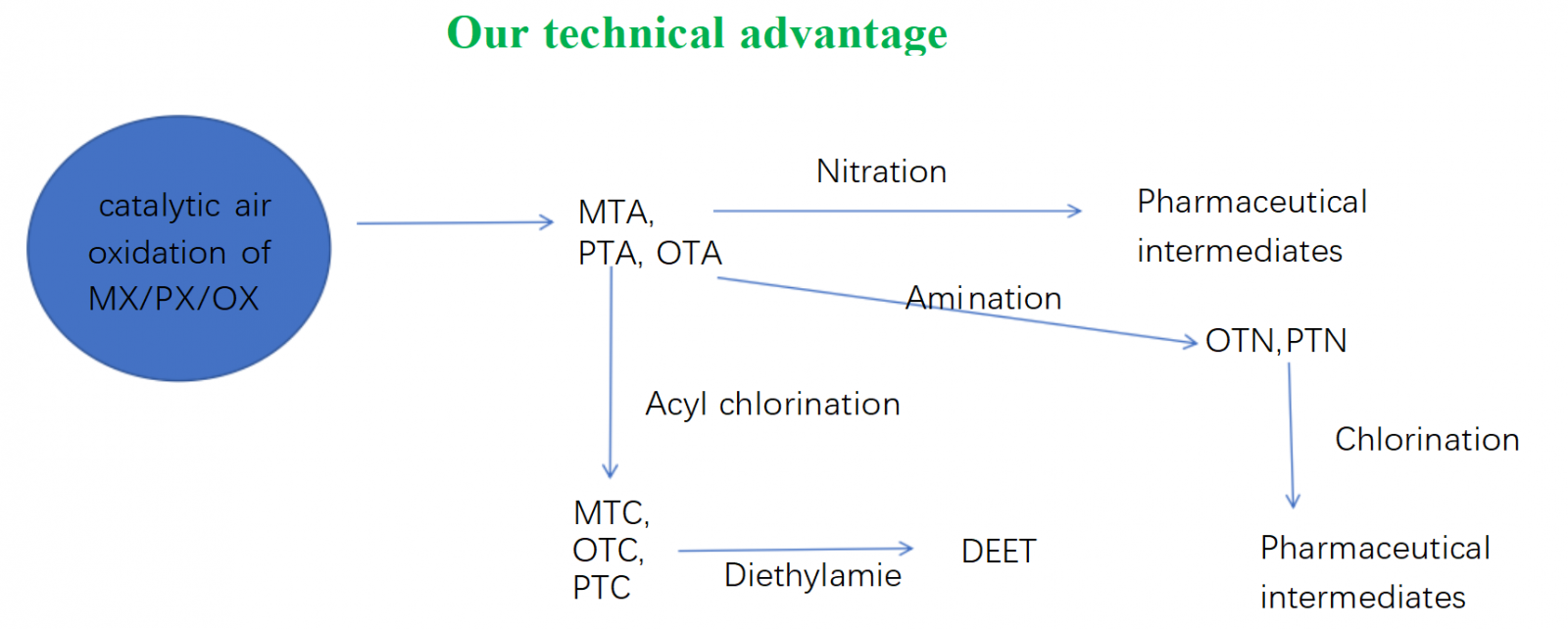 Our technical team has more than 30 years experience in catalytic air oxidation reaction and acyl chlorination reaction. We are committed to develop and manufacture methylbenzoic acid and its derivatives.